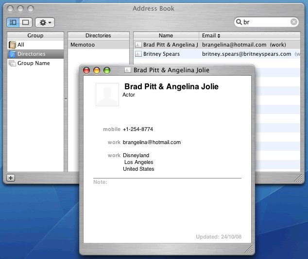 | E-mail addresses of your friends and contacts Benefits of Memotoo: get direct access through a LDAP directory in your e-mail client! |